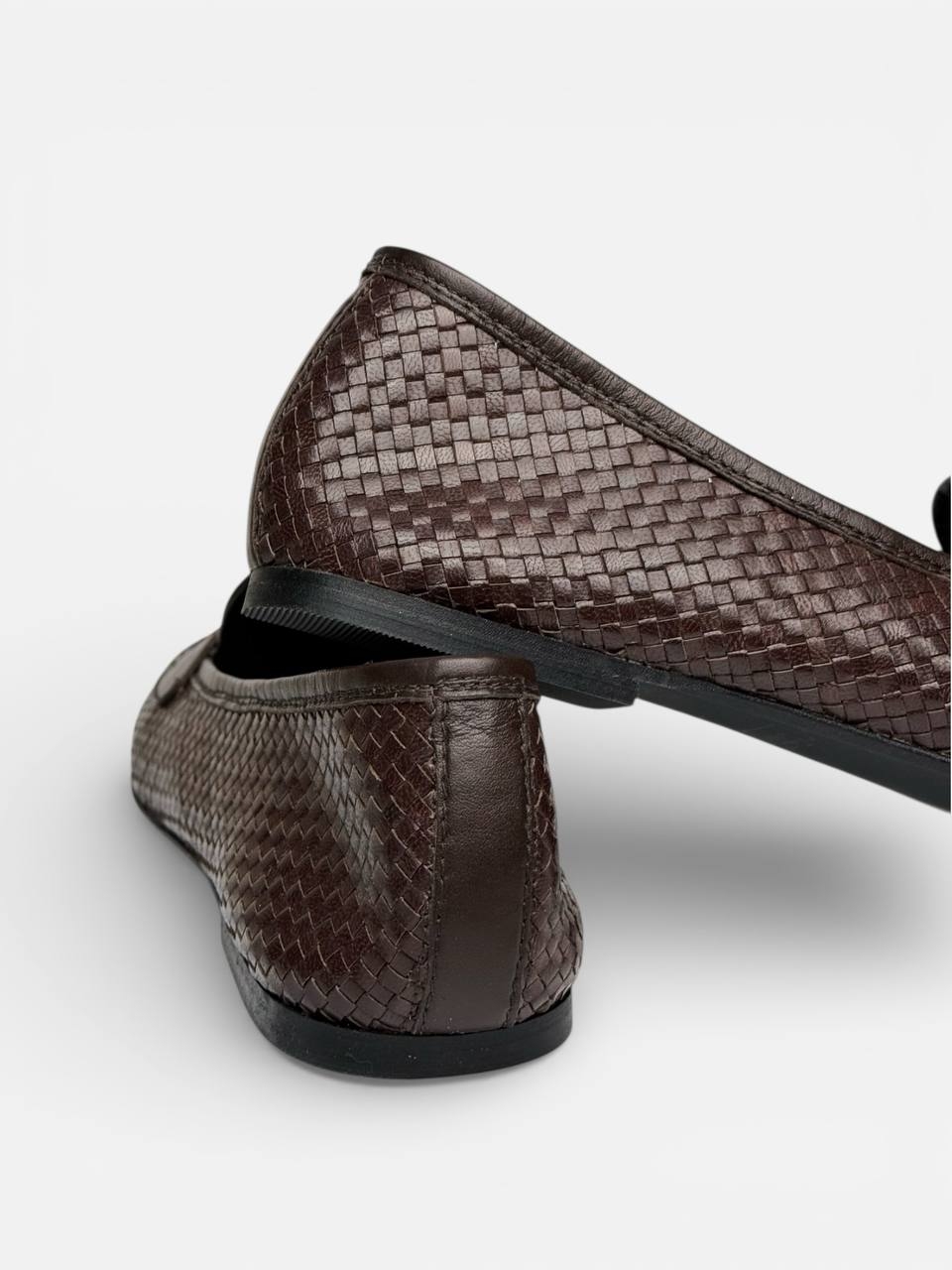 Елегантні коричневі лофери від HAMELEON з італійської плетеної шкіри поєднують у собі стиль, комфорт і довговічність. Натуральна шкіра забезпечує м’якість та гарну вентиляцію, а шкіряна устілка дарує зручність протягом усього дня. Легка поліуретанова підошва гарантує стабільність та амортизацію під час ходьби. Ця модель ідеально підходить як для повсякденних образів, так і для більш класичних поєднань.